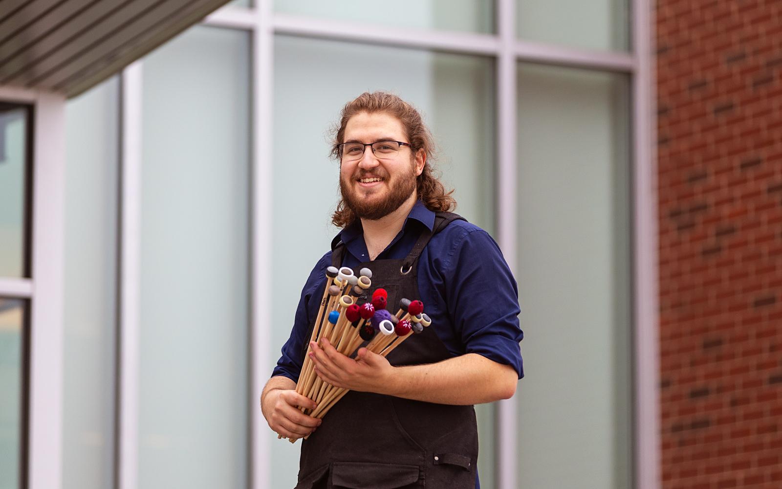 “I’m excited for student teaching, to help students learn about mallet making and sound design, and help them become more independent in the stuff they’re doing musically,” he said.