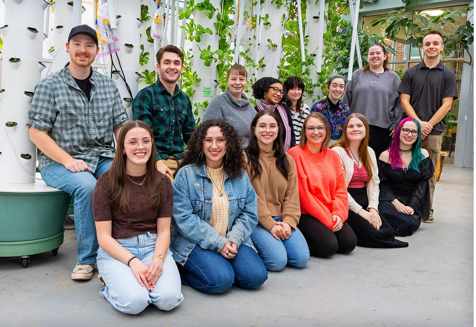 Front row (from left): Liv Claus, Karrie Streeter, Emma Locklin, Adella Duval. Middle row (from left): Faculty member Sarah Cantwell, Daijah Velez, Hellen Howard, Allison Carvel, Evelyn Klein. Top row (from left): Eli Siracusa, Alex Cullum, Em O’Donnell, Jenna Switzer, Zachariah Morehouse, Josef Kaufman.